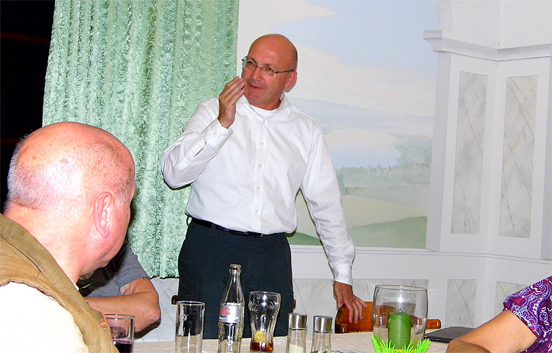 Dr. Rainer Balzer berichtete im Anschluss in seiner Eigenschaft als Landtagsabgeordneter, wie sehr Grüne und Linke den Weg der Unterminierung der deutschen Gesellschaft durch unkontrollierte Masseneinwanderung politisch massiv fördern. Als Dr. Balzer in seiner letzten Parlamentsrede vom deutschen Volk sprach, verzeichnete das Protokoll als Reaktion darauf „Unruhe im Saal“. Selbst die bloße Erwähnung des deutschen Volkes löst bei grün-linken Multikulturalisten bereits Unmutsäußerungen aus.